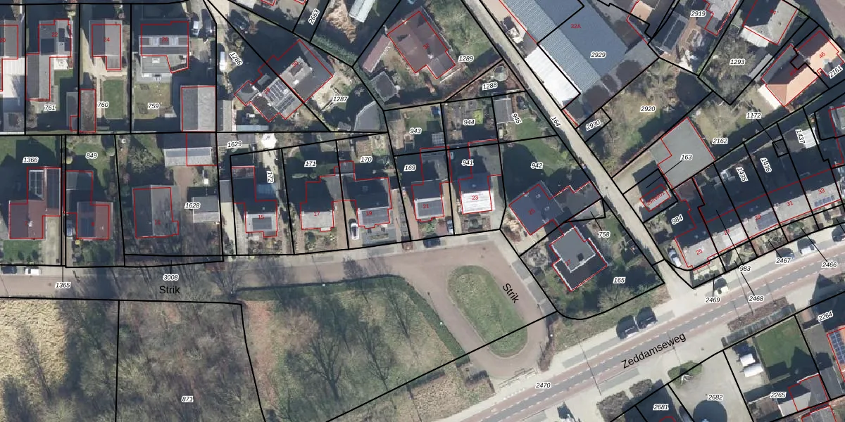 Het perceel waarop Strik 21 staat heeft een oppervlakte van 231 m². Dit is een middelgroot perceel. De perceeloppervlakte wordt geregistreerd door het Kadaster. Gedetailleerde informatie over de maten van dit perceel kunt u vinden in het rapport Kadastrale kaart met maatvoering van Strik 21.