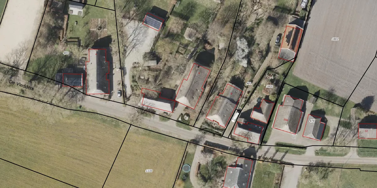 Het perceel waarop De Vledders 6 staat heeft een oppervlakte van 6473 m². Dit is een zeer groot perceel. De perceeloppervlakte wordt geregistreerd door het Kadaster. Gedetailleerde informatie over de maten van dit perceel kunt u vinden in het rapport Kadastrale kaart met maatvoering van De Vledders 6.