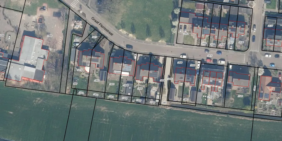Graaf Florisstraat 16 is gelegen op kadastraal perceel EVD00A1495. Deze kadastrale aanduiding is uniek en wordt gebruikt door het Kadaster om eigendomsrechten en andere zakelijke rechten vast te leggen. Het perceel maakt onderdeel uit van de kadastrale gemeente Everdingen.
