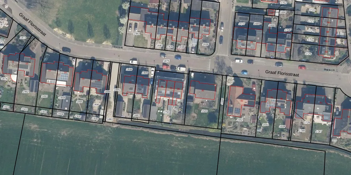 Graaf Florisstraat 28 is gelegen op kadastraal perceel EVD00A1750. Deze kadastrale aanduiding is uniek en wordt gebruikt door het Kadaster om eigendomsrechten en andere zakelijke rechten vast te leggen. Het perceel maakt onderdeel uit van de kadastrale gemeente Everdingen.