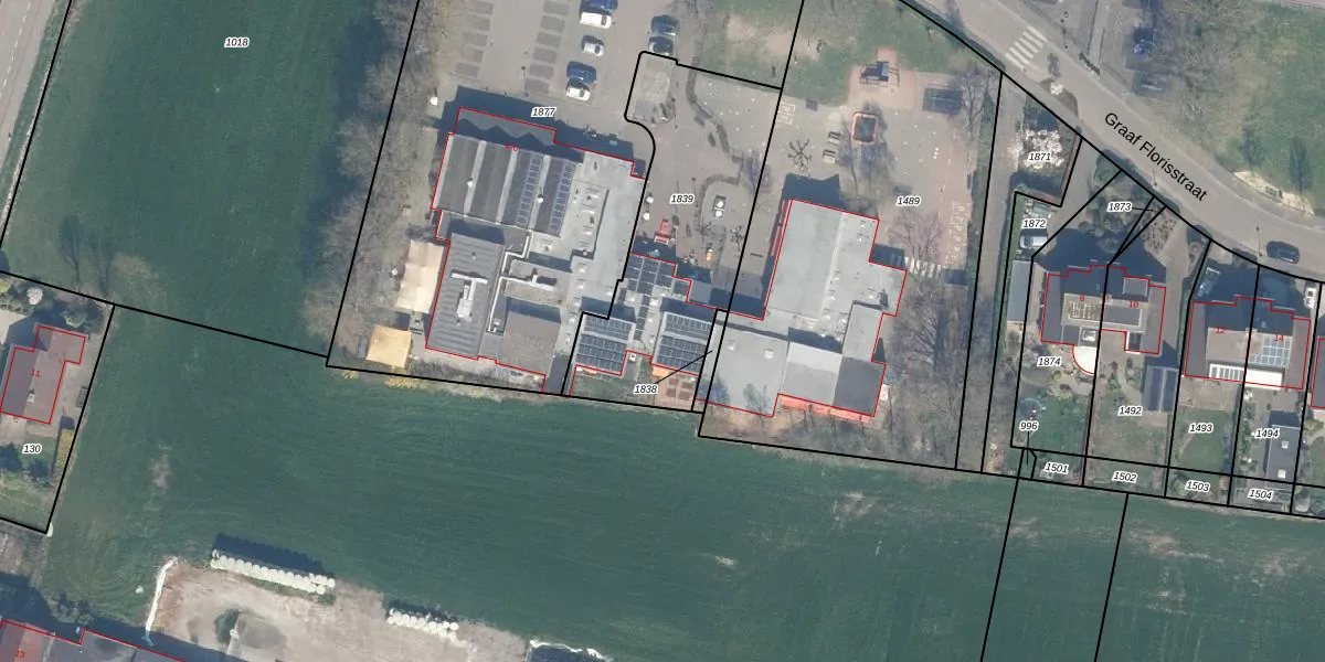 Het perceel waarop Graaf Florisstraat 4-b staat heeft een oppervlakte van 955 m². Dit is een groot perceel. De perceeloppervlakte wordt geregistreerd door het Kadaster. Gedetailleerde informatie over de maten van dit perceel kunt u vinden in het rapport Kadastrale kaart met maatvoering van Graaf Florisstraat 4-b.