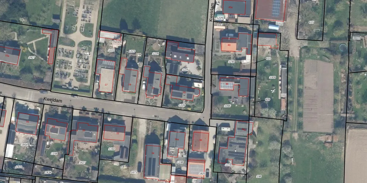 Het perceel waarop Kweldam 23 staat heeft een oppervlakte van 400 m². Dit is een groot perceel. De perceeloppervlakte wordt geregistreerd door het Kadaster. Gedetailleerde informatie over de maten van dit perceel kunt u vinden in het rapport Kadastrale kaart met maatvoering van Kweldam 23.
