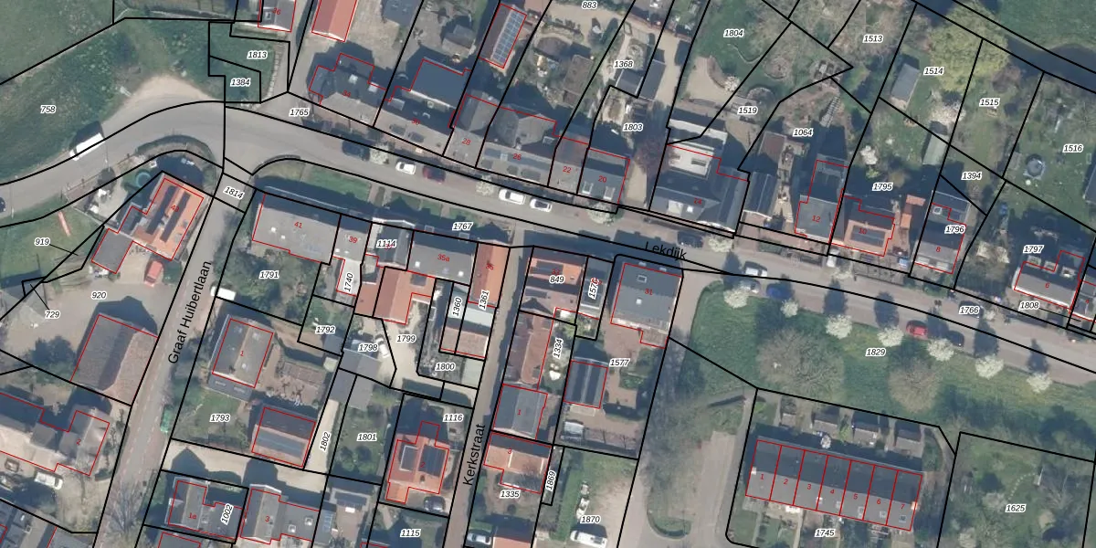 Het perceel waarop Lekdijk 33 staat heeft een oppervlakte van 125 m². Dit is een middelgroot perceel. De perceeloppervlakte wordt geregistreerd door het Kadaster. Gedetailleerde informatie over de maten van dit perceel kunt u vinden in het rapport Kadastrale kaart met maatvoering van Lekdijk 33.