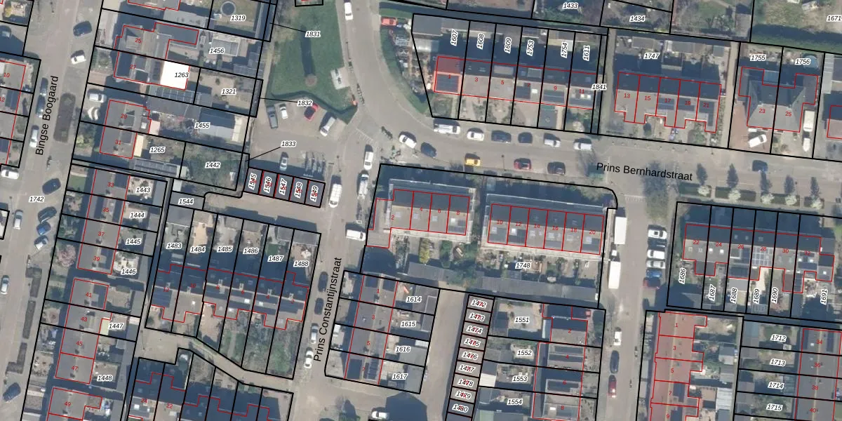 Het perceel waarop Prins Bernhardstraat 4 staat heeft een oppervlakte van 1575 m². Dit is een zeer groot perceel. De perceeloppervlakte wordt geregistreerd door het Kadaster. Gedetailleerde informatie over de maten van dit perceel kunt u vinden in het rapport Kadastrale kaart met maatvoering van Prins Bernhardstraat 4.