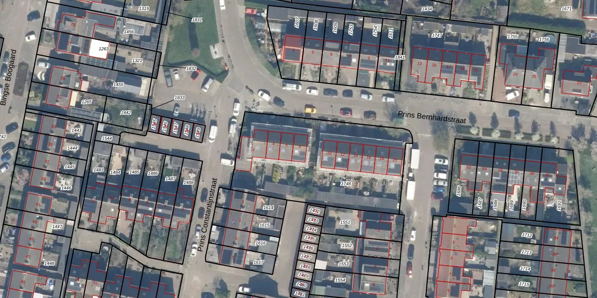 Het perceel waarop Prins Bernhardstraat 8 staat heeft een oppervlakte van 1575 m². Dit is een zeer groot perceel. De perceeloppervlakte wordt geregistreerd door het Kadaster. Gedetailleerde informatie over de maten van dit perceel kunt u vinden in het rapport Kadastrale kaart met maatvoering van Prins Bernhardstraat 8.