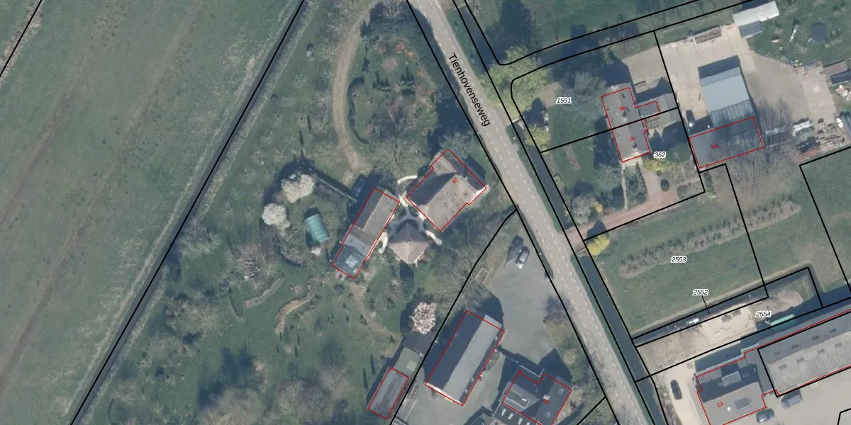 Tienhovenseweg 45 is gelegen op kadastraal perceel VAN00G438. Deze kadastrale aanduiding is uniek en wordt gebruikt door het Kadaster om eigendomsrechten en andere zakelijke rechten vast te leggen. Het perceel maakt onderdeel uit van de kadastrale gemeente Vianen.