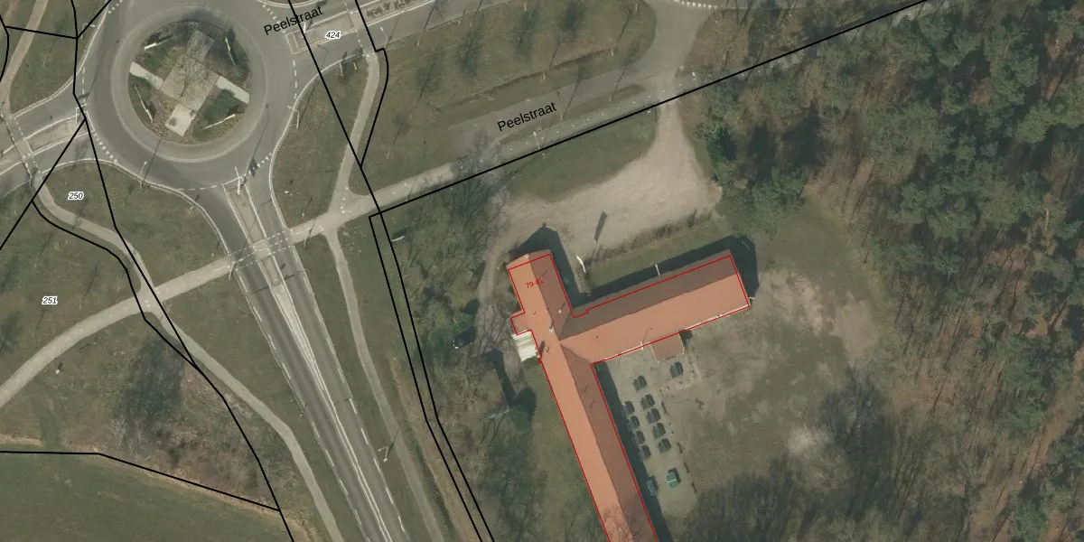 Het perceel waarop Peelstraat 79 staat heeft een oppervlakte van 4,5 ha. Dit is een zeer groot perceel. De perceeloppervlakte wordt geregistreerd door het Kadaster. Gedetailleerde informatie over de maten van dit perceel kunt u vinden in het rapport Kadastrale kaart met maatvoering van Peelstraat 79.
