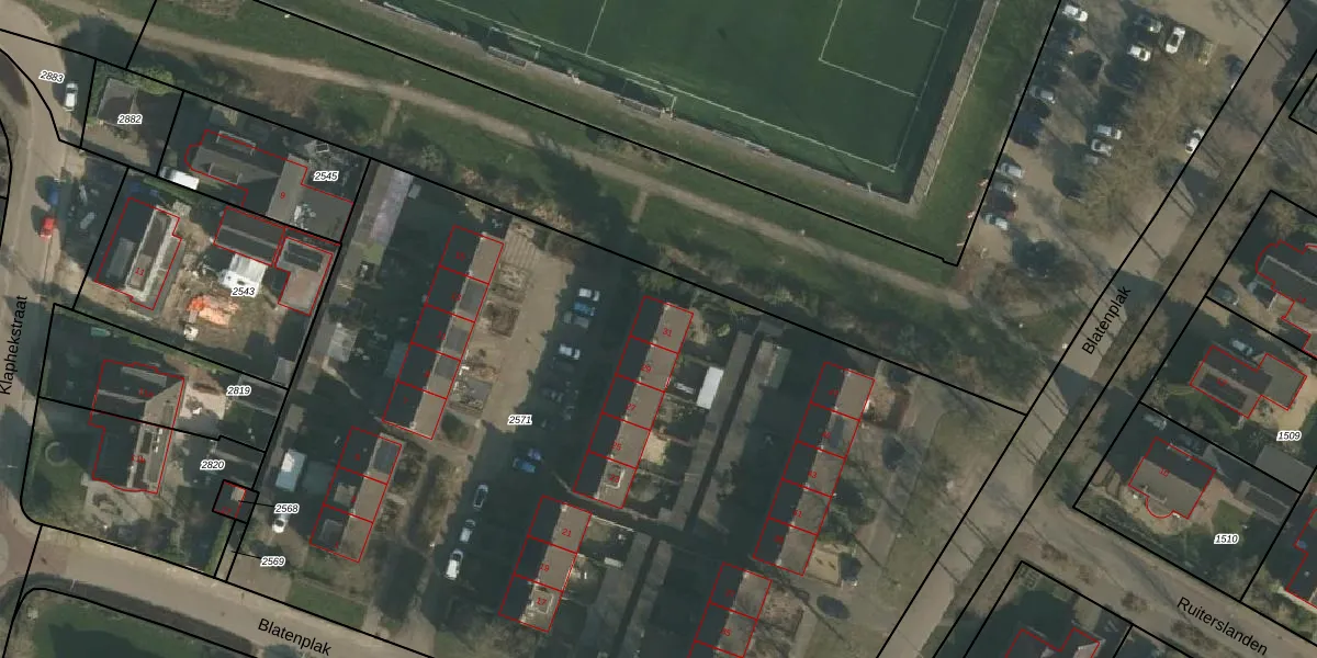 Blatenplak 31 is gelegen op kadastraal perceel EWK00A2571. Deze kadastrale aanduiding is uniek en wordt gebruikt door het Kadaster om eigendomsrechten en andere zakelijke rechten vast te leggen. Het perceel maakt onderdeel uit van de kadastrale gemeente Ewijk.