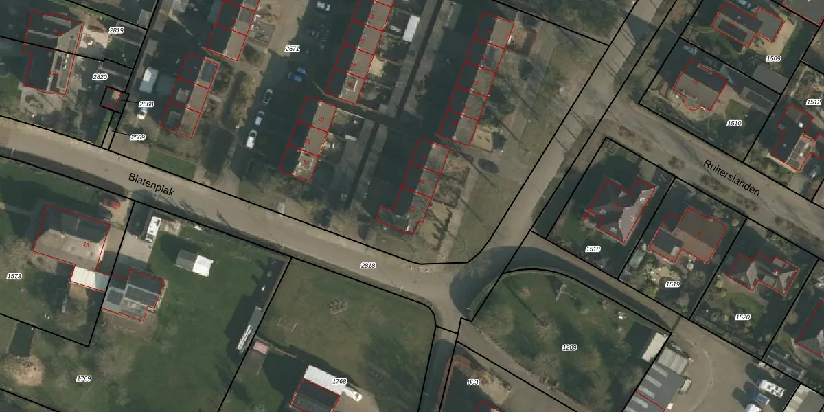 Het perceel waarop Blatenplak 33 staat heeft een oppervlakte van 6670 m². Dit is een zeer groot perceel. De perceeloppervlakte wordt geregistreerd door het Kadaster. Gedetailleerde informatie over de maten van dit perceel kunt u vinden in het rapport Kadastrale kaart met maatvoering van Blatenplak 33.