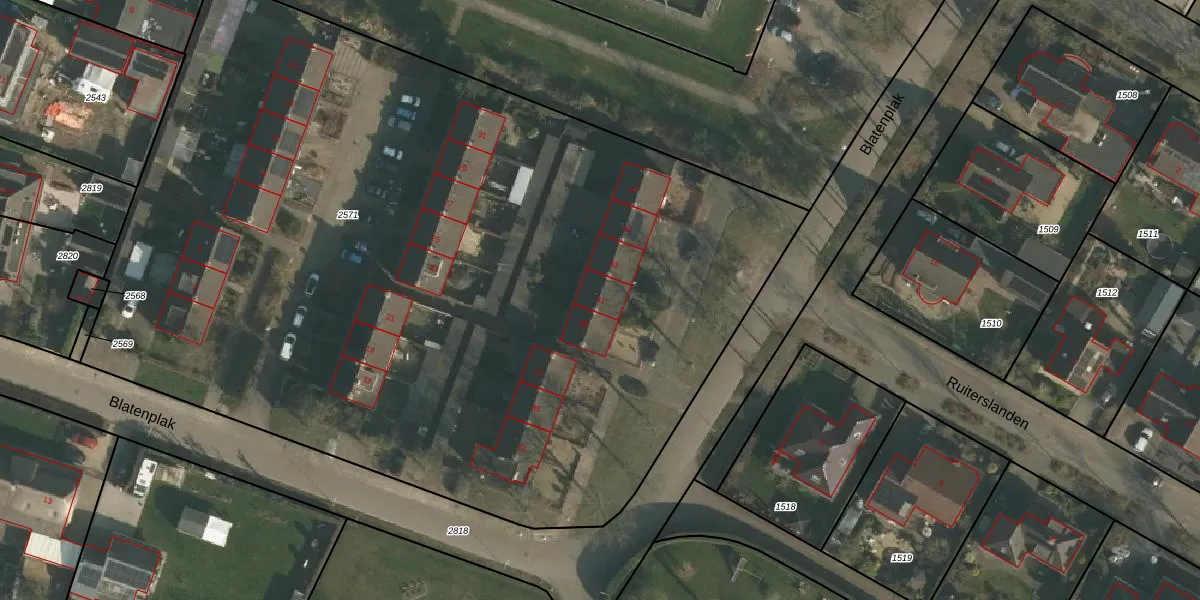 Blatenplak 41 is gelegen op kadastraal perceel EWK00A2571. Deze kadastrale aanduiding is uniek en wordt gebruikt door het Kadaster om eigendomsrechten en andere zakelijke rechten vast te leggen. Het perceel maakt onderdeel uit van de kadastrale gemeente Ewijk.