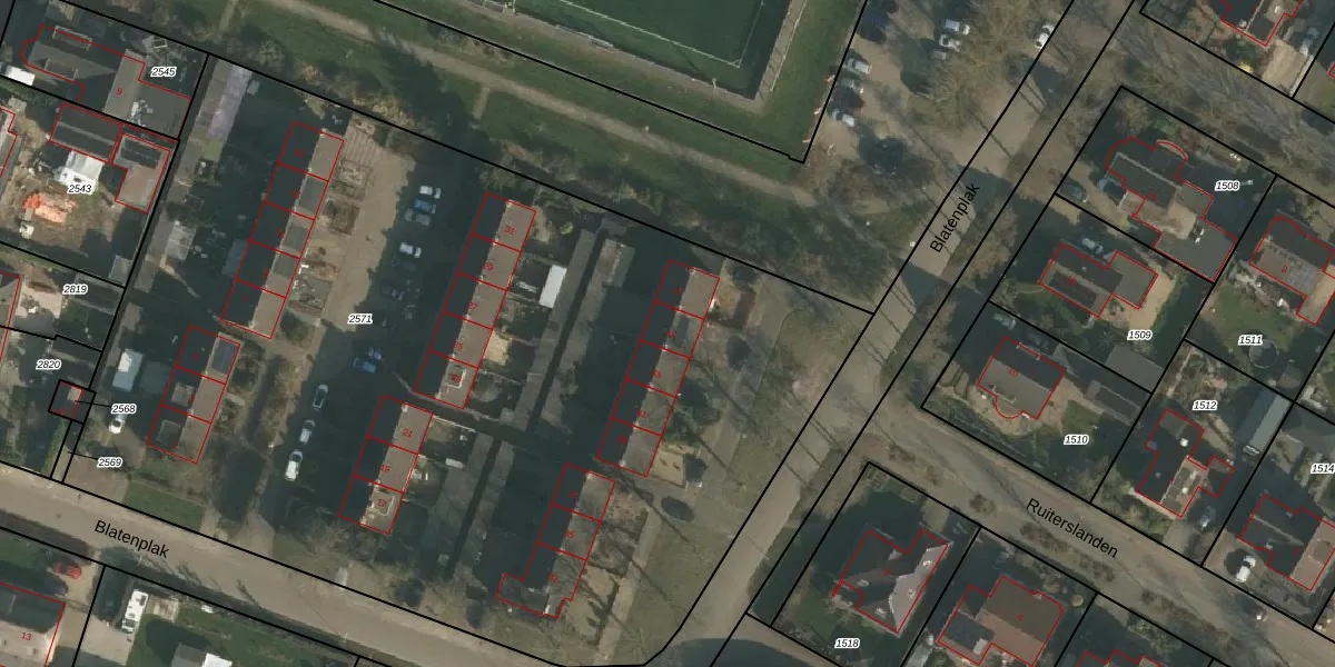 Blatenplak 45 is gelegen op kadastraal perceel EWK00A2571. Deze kadastrale aanduiding is uniek en wordt gebruikt door het Kadaster om eigendomsrechten en andere zakelijke rechten vast te leggen. Het perceel maakt onderdeel uit van de kadastrale gemeente Ewijk.
