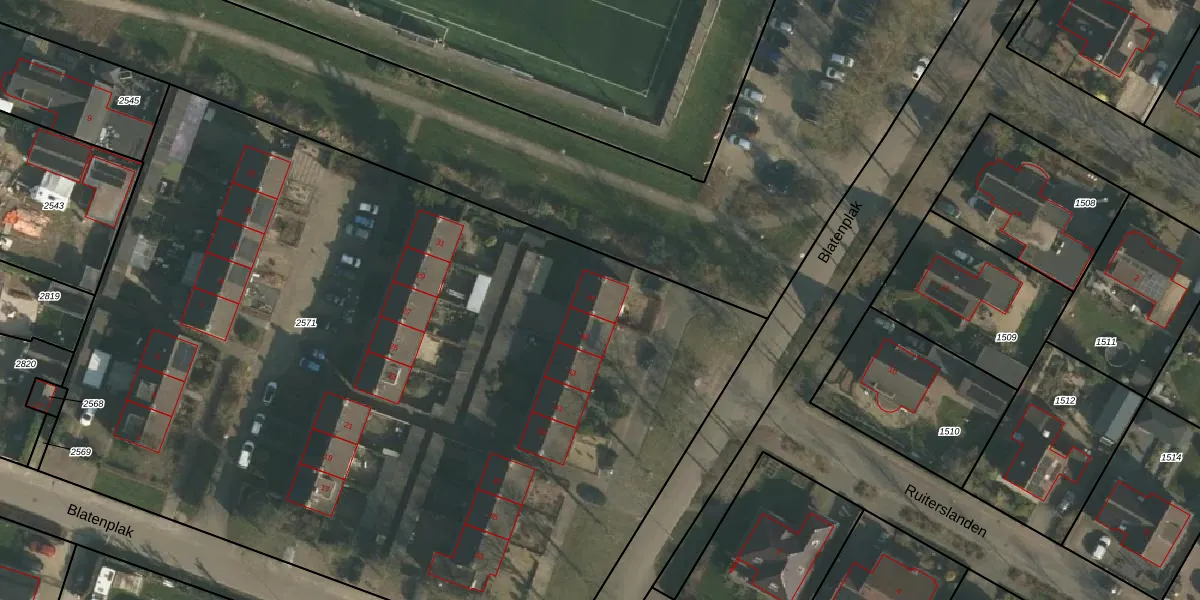 Het perceel waarop Blatenplak 47 staat heeft een oppervlakte van 6670 m². Dit is een zeer groot perceel. De perceeloppervlakte wordt geregistreerd door het Kadaster. Gedetailleerde informatie over de maten van dit perceel kunt u vinden in het rapport Kadastrale kaart met maatvoering van Blatenplak 47.