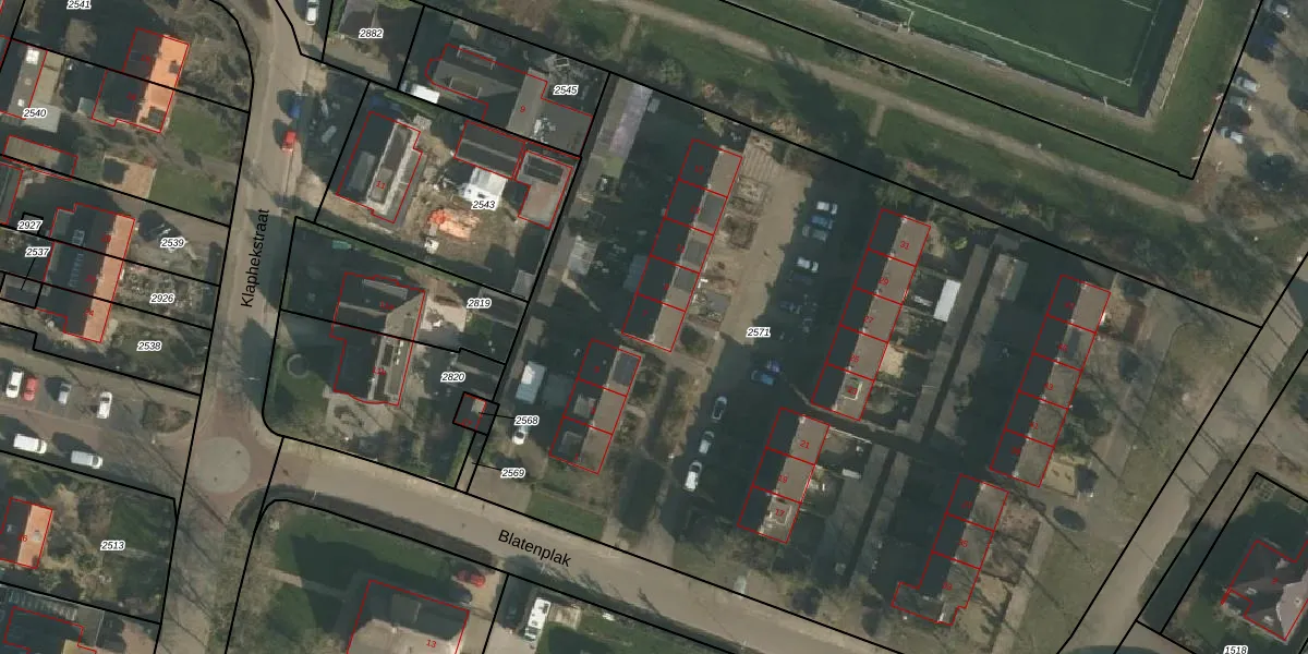 Blatenplak 7 is gelegen op kadastraal perceel EWK00A2571. Deze kadastrale aanduiding is uniek en wordt gebruikt door het Kadaster om eigendomsrechten en andere zakelijke rechten vast te leggen. Het perceel maakt onderdeel uit van de kadastrale gemeente Ewijk.