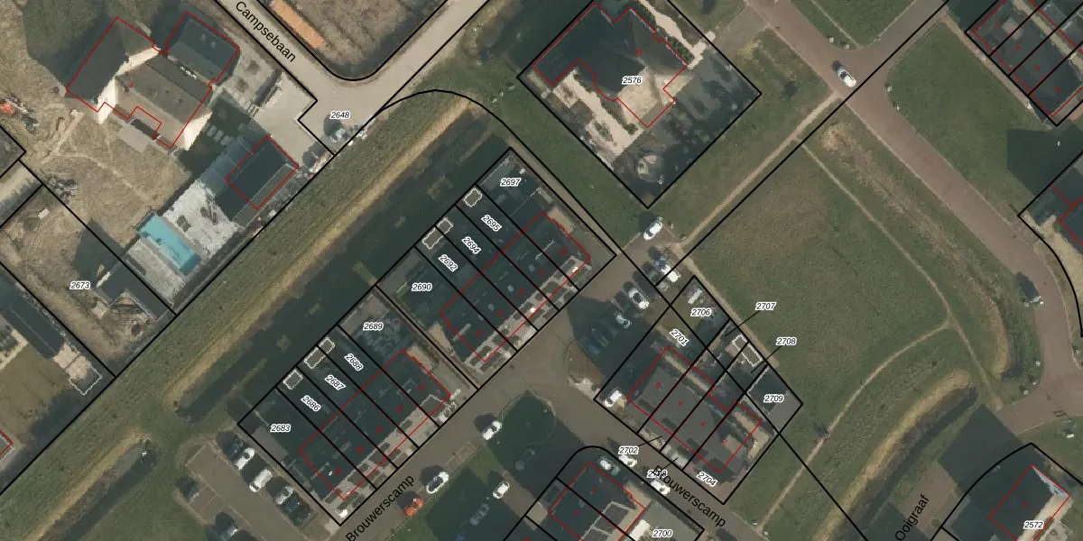 Gebruik de zoekbalk of klik op een perceel voor informatie over de adressen binnen dit perceel.