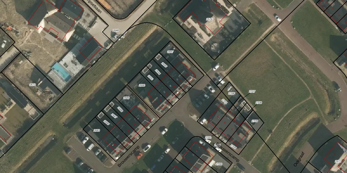 Gebruik de zoekbalk of klik op een perceel voor informatie over de adressen binnen dit perceel.