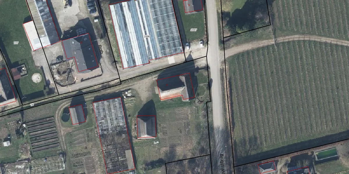 Het perceel waarop Brugstraat 8 staat heeft een oppervlakte van 1,4 ha. Dit is een zeer groot perceel. De perceeloppervlakte wordt geregistreerd door het Kadaster. Gedetailleerde informatie over de maten van dit perceel kunt u vinden in het rapport Kadastrale kaart met maatvoering van Brugstraat 8.