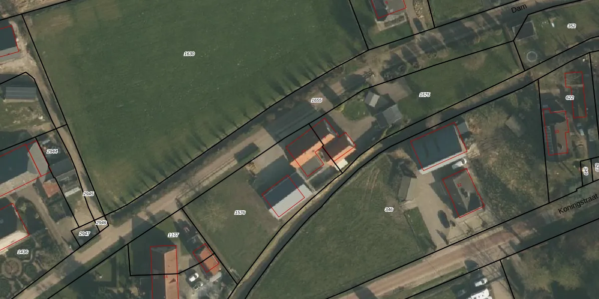 Het perceel waarop Dam 1-a staat heeft een oppervlakte van 1245 m². Dit is een zeer groot perceel. De perceeloppervlakte wordt geregistreerd door het Kadaster. Gedetailleerde informatie over de maten van dit perceel kunt u vinden in het rapport Kadastrale kaart met maatvoering van Dam 1-a.