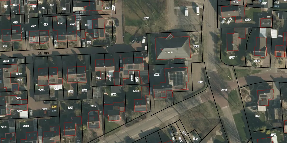 de Bas 1 is gelegen op kadastraal perceel EWK00A2654. Deze kadastrale aanduiding is uniek en wordt gebruikt door het Kadaster om eigendomsrechten en andere zakelijke rechten vast te leggen. Het perceel maakt onderdeel uit van de kadastrale gemeente Ewijk.