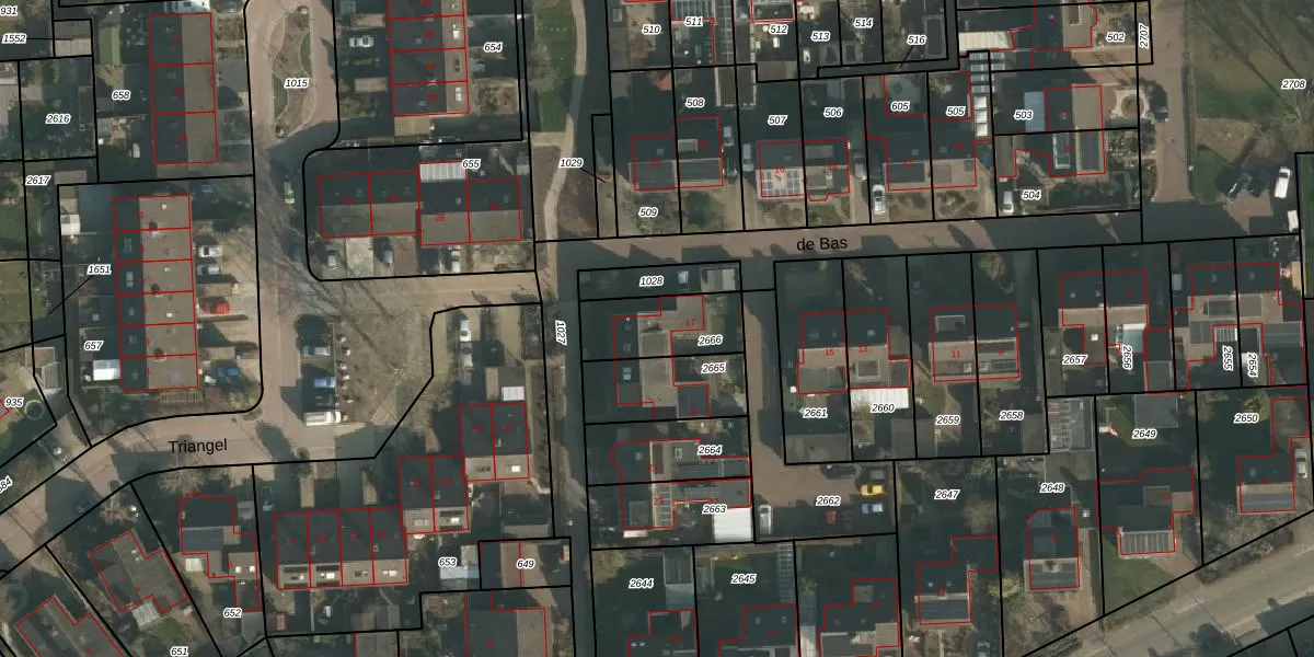 Het perceel waarop de Bas 17 staat heeft een oppervlakte van 236 m². Dit is een middelgroot perceel. De perceeloppervlakte wordt geregistreerd door het Kadaster. Gedetailleerde informatie over de maten van dit perceel kunt u vinden in het rapport Kadastrale kaart met maatvoering van de Bas 17.