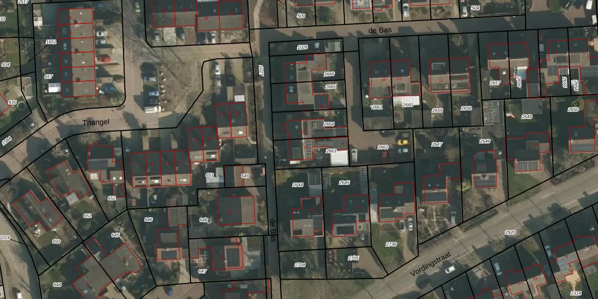 de Bas 23 is gelegen op kadastraal perceel EWK00A2663. Deze kadastrale aanduiding is uniek en wordt gebruikt door het Kadaster om eigendomsrechten en andere zakelijke rechten vast te leggen. Het perceel maakt onderdeel uit van de kadastrale gemeente Ewijk.