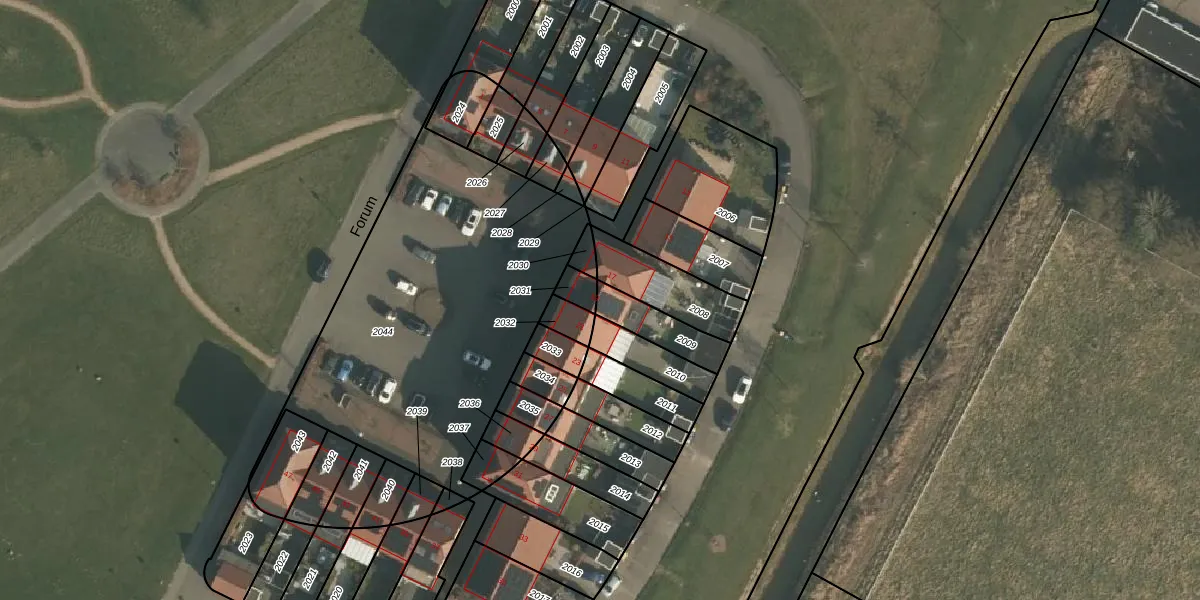 Het perceel waarop Forum 19 staat heeft een oppervlakte van 126 m². Dit is een middelgroot perceel. De perceeloppervlakte wordt geregistreerd door het Kadaster. Gedetailleerde informatie over de maten van dit perceel kunt u vinden in het rapport Kadastrale kaart met maatvoering van Forum 19.