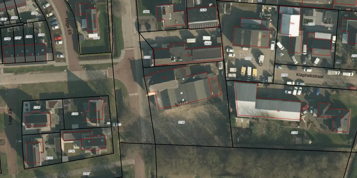 Hoogstraat 9 is gelegen op kadastraal perceel EWK00A2718. Deze kadastrale aanduiding is uniek en wordt gebruikt door het Kadaster om eigendomsrechten en andere zakelijke rechten vast te leggen. Het perceel maakt onderdeel uit van de kadastrale gemeente Ewijk.