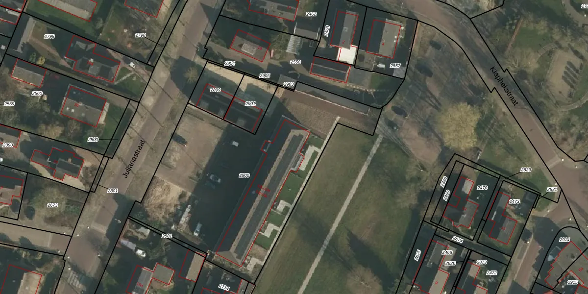 Julianastraat 13-e is gelegen op kadastraal perceel EWK00A2900. Deze kadastrale aanduiding is uniek en wordt gebruikt door het Kadaster om eigendomsrechten en andere zakelijke rechten vast te leggen. Het perceel maakt onderdeel uit van de kadastrale gemeente Ewijk.