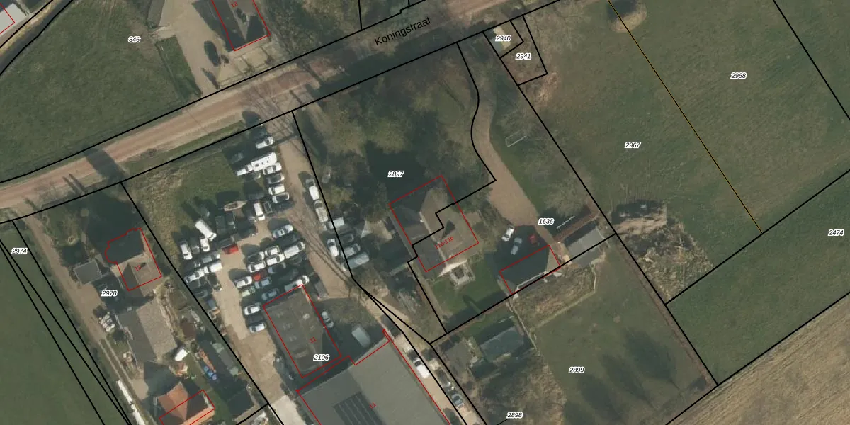 Het perceel waarop Koningstraat 11-a staat heeft een oppervlakte van 1745 m². Dit is een zeer groot perceel. De perceeloppervlakte wordt geregistreerd door het Kadaster. Gedetailleerde informatie over de maten van dit perceel kunt u vinden in het rapport Kadastrale kaart met maatvoering van Koningstraat 11-a.