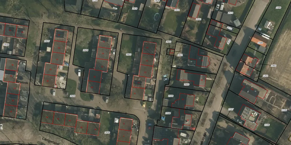 Lampeland 12 is gelegen op kadastraal perceel EWK00A2603. Deze kadastrale aanduiding is uniek en wordt gebruikt door het Kadaster om eigendomsrechten en andere zakelijke rechten vast te leggen. Het perceel maakt onderdeel uit van de kadastrale gemeente Ewijk.