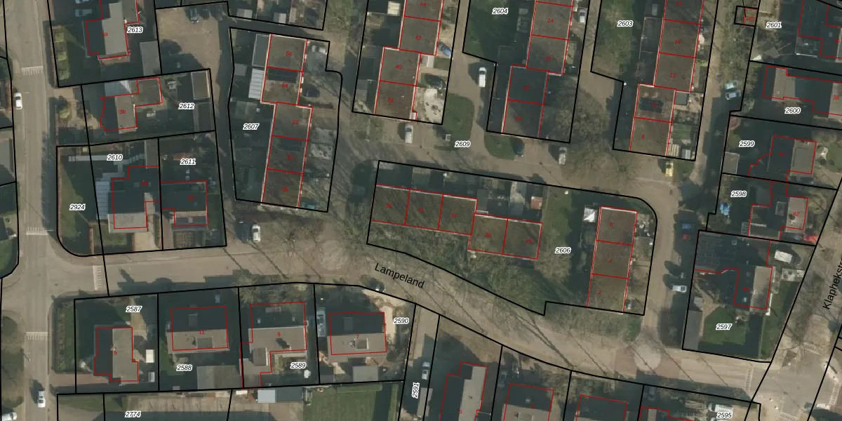 Lampeland 34 is gelegen op kadastraal perceel EWK00A2606. Deze kadastrale aanduiding is uniek en wordt gebruikt door het Kadaster om eigendomsrechten en andere zakelijke rechten vast te leggen. Het perceel maakt onderdeel uit van de kadastrale gemeente Ewijk.