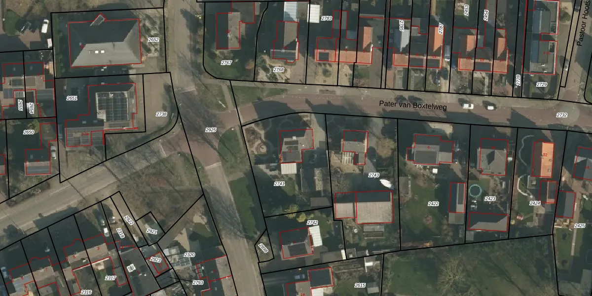 Pater van Boxtelweg 2 is gelegen op kadastraal perceel EWK00A2741. Deze kadastrale aanduiding is uniek en wordt gebruikt door het Kadaster om eigendomsrechten en andere zakelijke rechten vast te leggen. Het perceel maakt onderdeel uit van de kadastrale gemeente Ewijk.
