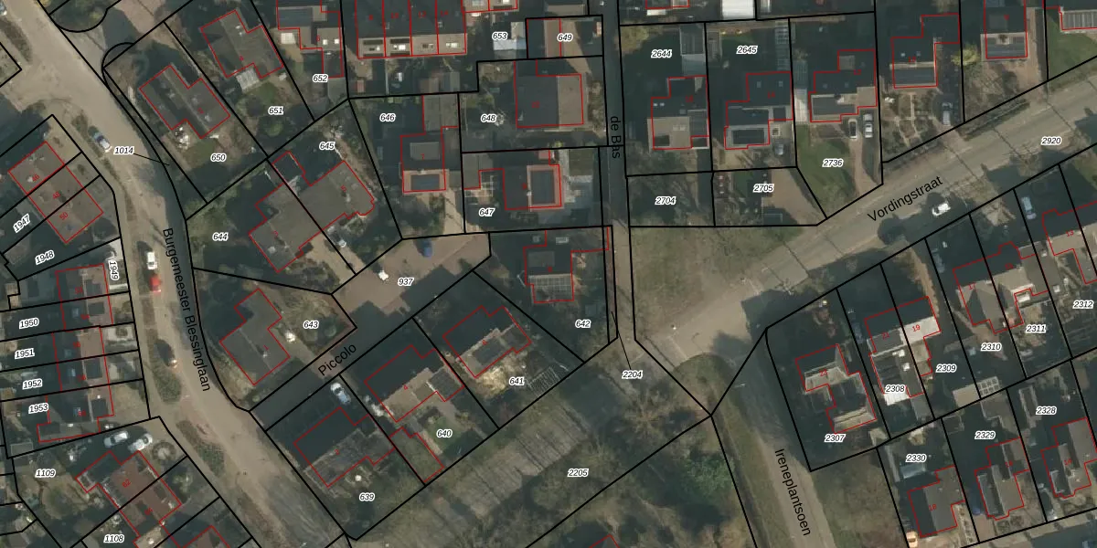 Het perceel waarop Piccolo 8 staat heeft een oppervlakte van 396 m². Dit is een groot perceel. De perceeloppervlakte wordt geregistreerd door het Kadaster. Gedetailleerde informatie over de maten van dit perceel kunt u vinden in het rapport Kadastrale kaart met maatvoering van Piccolo 8.