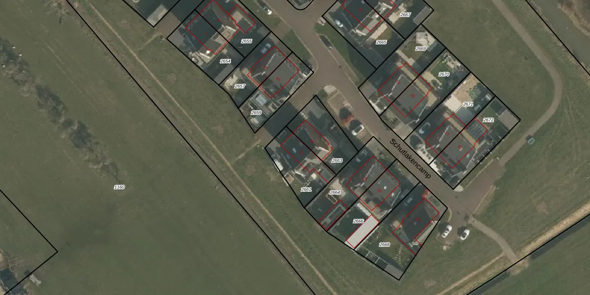 Het perceel waarop Schutlakencamp 12 staat heeft een oppervlakte van 308 m². Dit is een groot perceel. De perceeloppervlakte wordt geregistreerd door het Kadaster. Gedetailleerde informatie over de maten van dit perceel kunt u vinden in het rapport Kadastrale kaart met maatvoering van Schutlakencamp 12.