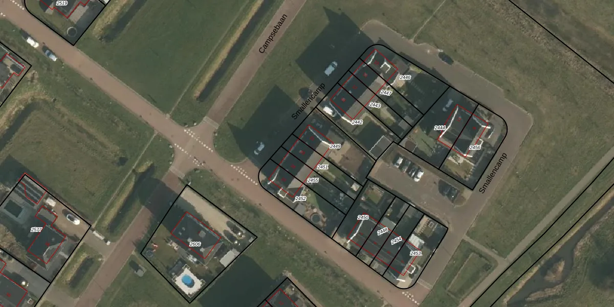 Gebruik de zoekbalk of klik op een perceel voor informatie over de adressen binnen dit perceel.