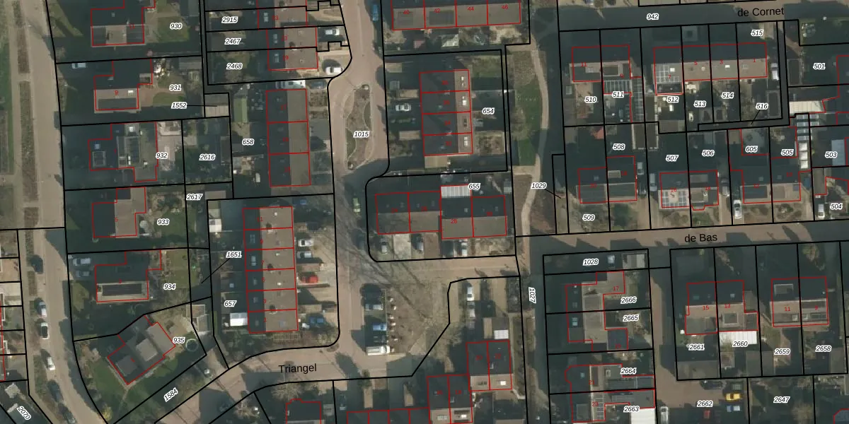 Het perceel waarop Triangel 26 staat heeft een oppervlakte van 1338 m². Dit is een zeer groot perceel. De perceeloppervlakte wordt geregistreerd door het Kadaster. Gedetailleerde informatie over de maten van dit perceel kunt u vinden in het rapport Kadastrale kaart met maatvoering van Triangel 26.