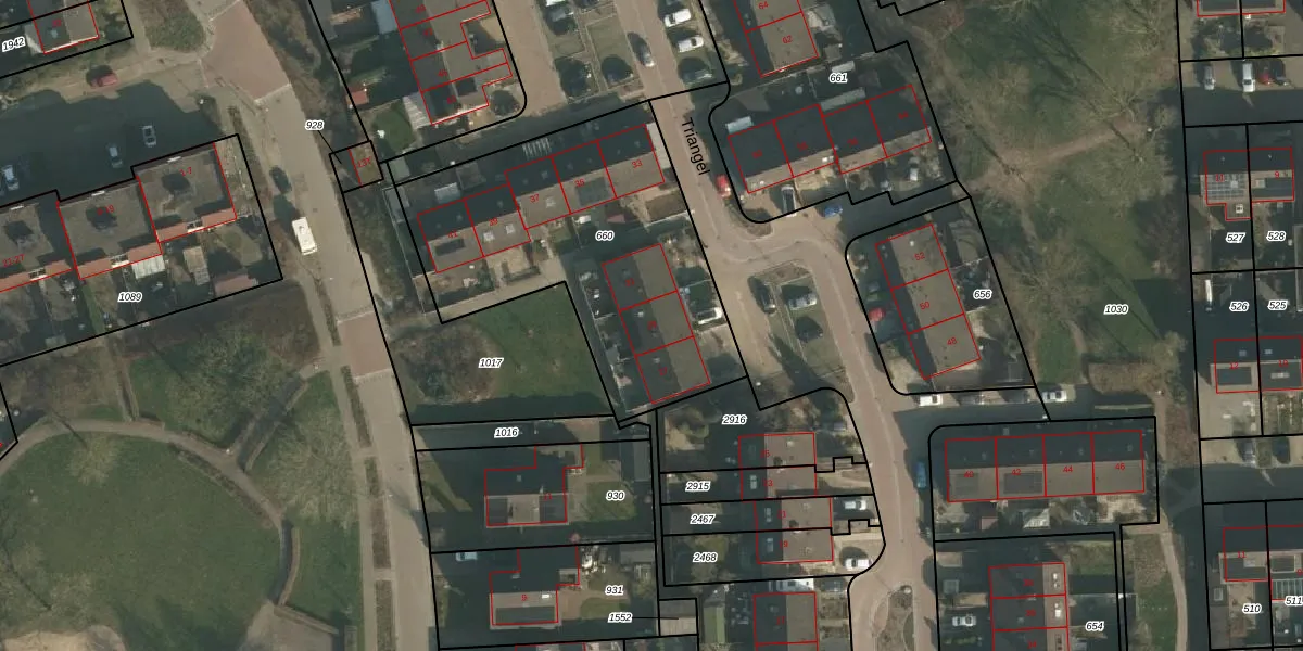 Het perceel waarop Triangel 29 staat heeft een oppervlakte van 1412 m². Dit is een zeer groot perceel. De perceeloppervlakte wordt geregistreerd door het Kadaster. Gedetailleerde informatie over de maten van dit perceel kunt u vinden in het rapport Kadastrale kaart met maatvoering van Triangel 29.