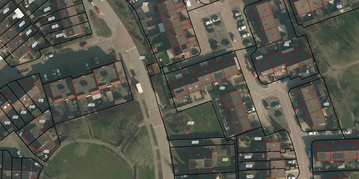 Het perceel waarop Triangel 41 staat heeft een oppervlakte van 1412 m². Dit is een zeer groot perceel. De perceeloppervlakte wordt geregistreerd door het Kadaster. Gedetailleerde informatie over de maten van dit perceel kunt u vinden in het rapport Kadastrale kaart met maatvoering van Triangel 41.