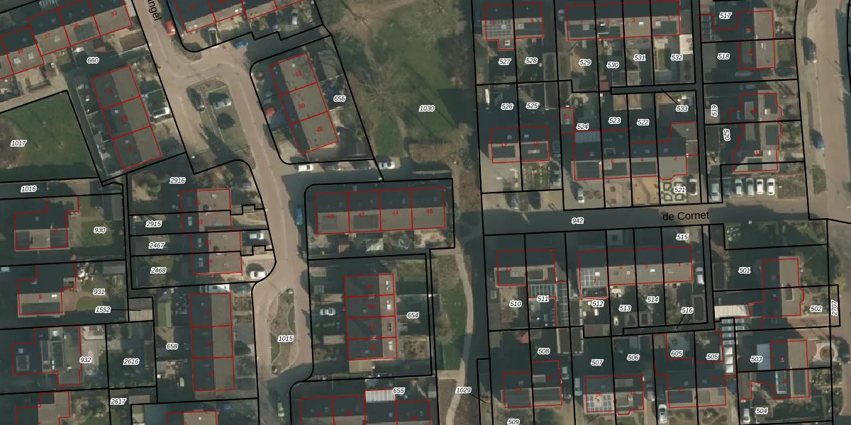 Het perceel waarop Triangel 46 staat heeft een oppervlakte van 1338 m². Dit is een zeer groot perceel. De perceeloppervlakte wordt geregistreerd door het Kadaster. Gedetailleerde informatie over de maten van dit perceel kunt u vinden in het rapport Kadastrale kaart met maatvoering van Triangel 46.