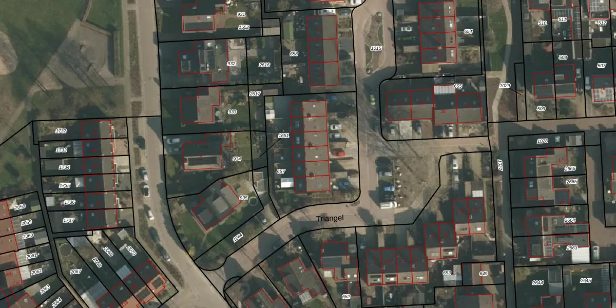 Het perceel waarop Triangel 5 staat heeft een oppervlakte van 1083 m². Dit is een zeer groot perceel. De perceeloppervlakte wordt geregistreerd door het Kadaster. Gedetailleerde informatie over de maten van dit perceel kunt u vinden in het rapport Kadastrale kaart met maatvoering van Triangel 5.