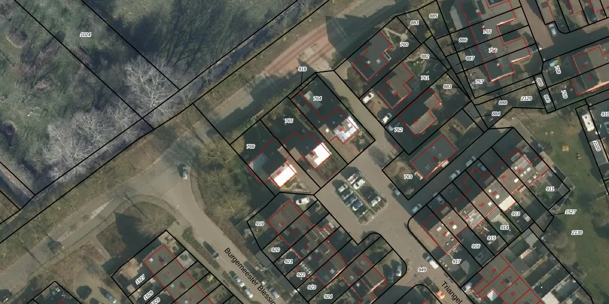 Het perceel waarop Triangel 87 staat heeft een oppervlakte van 364 m². Dit is een groot perceel. De perceeloppervlakte wordt geregistreerd door het Kadaster. Gedetailleerde informatie over de maten van dit perceel kunt u vinden in het rapport Kadastrale kaart met maatvoering van Triangel 87.