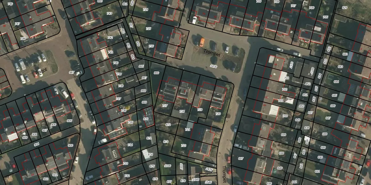 Het perceel waarop Trompet 9 staat heeft een oppervlakte van 247 m². Dit is een middelgroot perceel. De perceeloppervlakte wordt geregistreerd door het Kadaster. Gedetailleerde informatie over de maten van dit perceel kunt u vinden in het rapport Kadastrale kaart met maatvoering van Trompet 9.