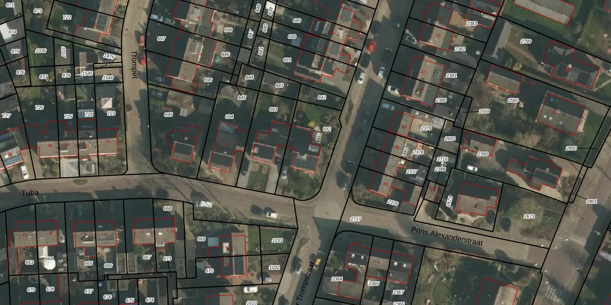 Het perceel waarop Tuba 2 staat heeft een oppervlakte van 466 m². Dit is een groot perceel. De perceeloppervlakte wordt geregistreerd door het Kadaster. Gedetailleerde informatie over de maten van dit perceel kunt u vinden in het rapport Kadastrale kaart met maatvoering van Tuba 2.