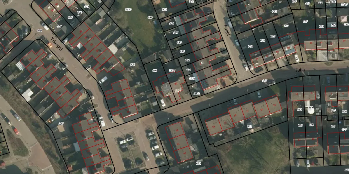 Het perceel waarop Tuba 26 staat heeft een oppervlakte van 234 m². Dit is een middelgroot perceel. De perceeloppervlakte wordt geregistreerd door het Kadaster. Gedetailleerde informatie over de maten van dit perceel kunt u vinden in het rapport Kadastrale kaart met maatvoering van Tuba 26.