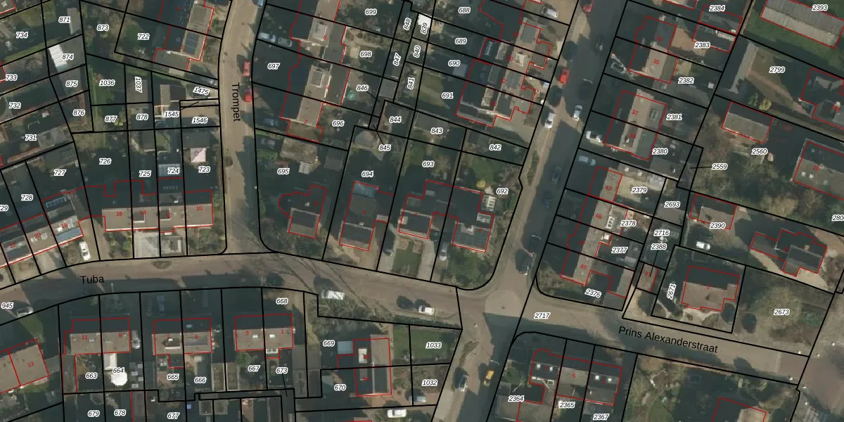 Het perceel waarop Tuba 4 staat heeft een oppervlakte van 418 m². Dit is een groot perceel. De perceeloppervlakte wordt geregistreerd door het Kadaster. Gedetailleerde informatie over de maten van dit perceel kunt u vinden in het rapport Kadastrale kaart met maatvoering van Tuba 4.
