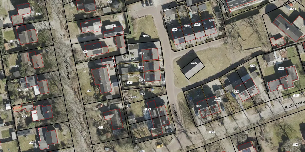 Het perceel waarop De Werf 5 staat heeft een oppervlakte van 300 m². Dit is een groot perceel. De perceeloppervlakte wordt geregistreerd door het Kadaster. Gedetailleerde informatie over de maten van dit perceel kunt u vinden in het rapport Kadastrale kaart met maatvoering van De Werf 5.