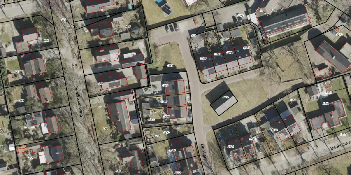 De Werf 9 is gelegen op kadastraal perceel ODN00I1586. Deze kadastrale aanduiding is uniek en wordt gebruikt door het Kadaster om eigendomsrechten en andere zakelijke rechten vast te leggen. Het perceel maakt onderdeel uit van de kadastrale gemeente Odoorn.
