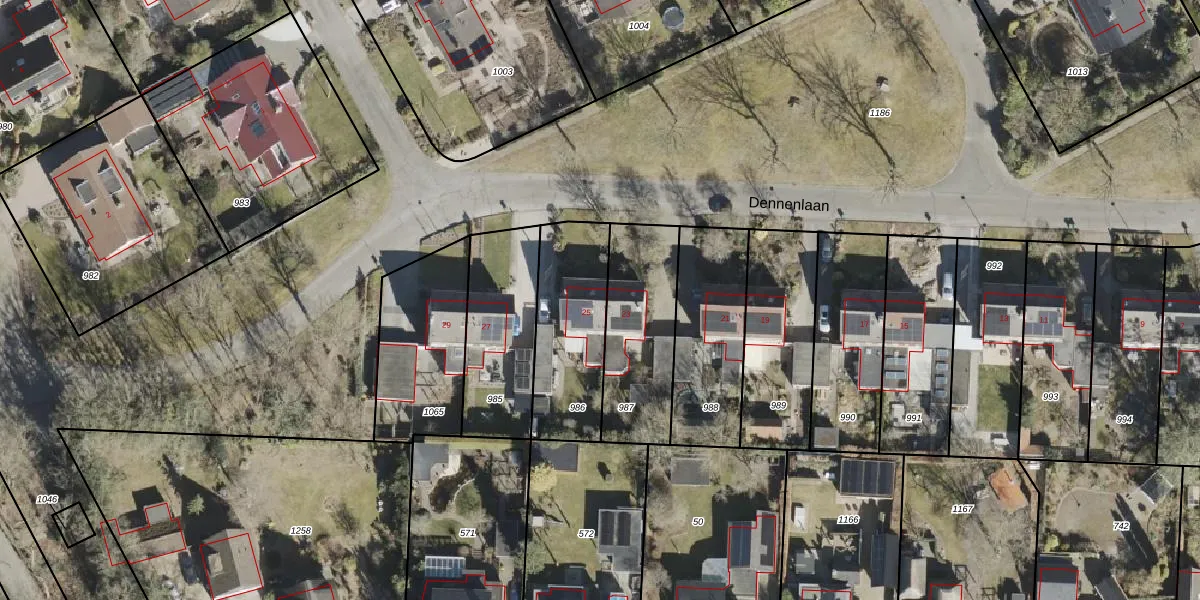 Het perceel waarop Dennenlaan 25 staat heeft een oppervlakte van 423 m². Dit is een groot perceel. De perceeloppervlakte wordt geregistreerd door het Kadaster. Gedetailleerde informatie over de maten van dit perceel kunt u vinden in het rapport Kadastrale kaart met maatvoering van Dennenlaan 25.