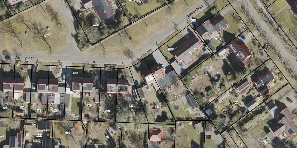 Het perceel waarop Dennenlaan 5 staat heeft een oppervlakte van 656 m². Dit is een groot perceel. De perceeloppervlakte wordt geregistreerd door het Kadaster. Gedetailleerde informatie over de maten van dit perceel kunt u vinden in het rapport Kadastrale kaart met maatvoering van Dennenlaan 5.