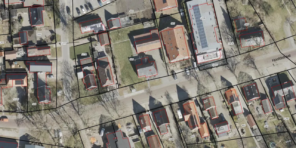 Hoofdstraat 12 is gelegen op kadastraal perceel ODN00I564. Deze kadastrale aanduiding is uniek en wordt gebruikt door het Kadaster om eigendomsrechten en andere zakelijke rechten vast te leggen. Het perceel maakt onderdeel uit van de kadastrale gemeente Odoorn.