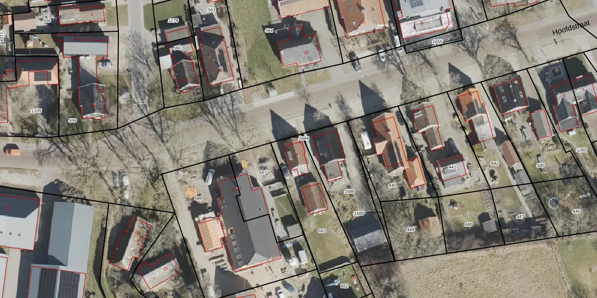 Het perceel waarop Hoofdstraat 17 staat heeft een oppervlakte van 566 m². Dit is een groot perceel. De perceeloppervlakte wordt geregistreerd door het Kadaster. Gedetailleerde informatie over de maten van dit perceel kunt u vinden in het rapport Kadastrale kaart met maatvoering van Hoofdstraat 17.